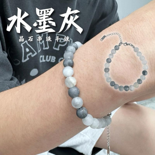 現貨 實拍 水墨灰 磨砂 串珠 手鍊 礦石 水晶 天然石 手串 男 女 SW047