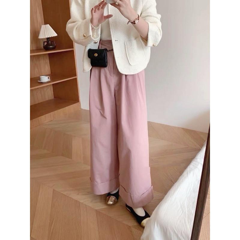 現貨 實拍 反摺造型 小隻女 九分寬褲 長褲 素面長褲 百搭