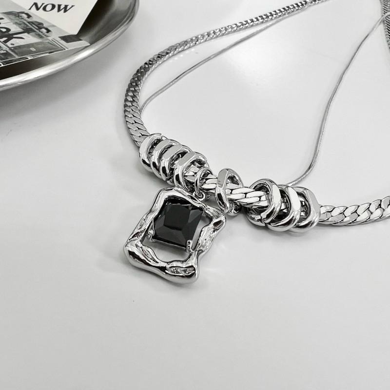 現貨 實拍 多層異形 鈦鋼 雙層 鋼飾 寶石項鍊 SN123