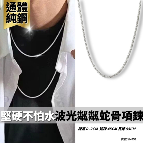 蛇骨 男 女 百搭 不鏽鋼 個性 簡約 潮流 波光粼粼 閃耀 中性 顏色:銀 材質:鈦鋼 尺寸(±0.5-1cm) 短:鍊長45cm 鍊寬0.2cm 長:鍊長55cm 鍊寬0.2cm  📦📦📦購買前請詳閱賣場介紹