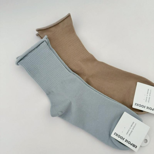 現貨 實拍 韓國製 捲捲邊 素面 短襪 韓系 襪子 中筒襪 棉