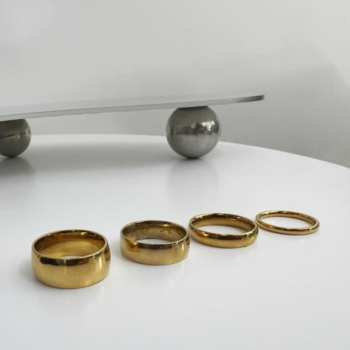 現貨 實拍 4 size 金弧圈圓弧戒 鈦鋼 寬戒 細戒