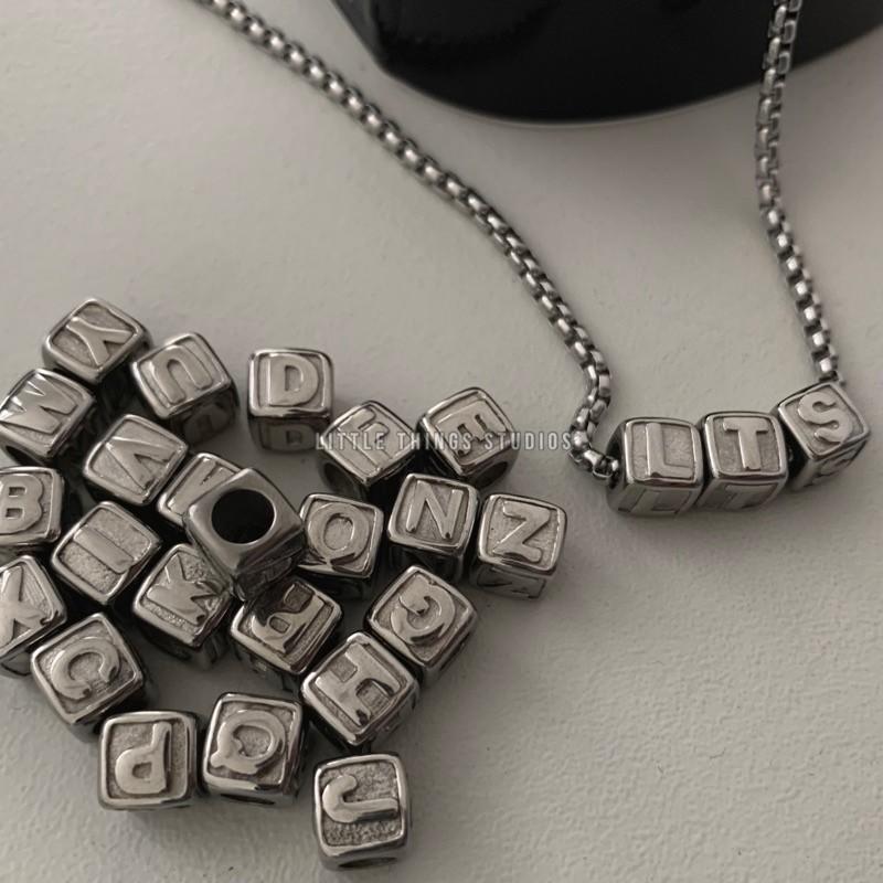 情侶 禮物 方磚 英文 兄弟 閨蜜 銀色 骰子 生日 禮物 魔方 ⚠️廠商斷貨 最後現貨字母⚠️ B*9/D*4/F*3/G*5/H*5/J*2/K*1/M*4/O*8/P*5/Q*5/R*3/T*3/U*1/V*5/W*3/X*8/Y*1 可以任意挑選需要的組合 非常適合當禮物的一款飾品 $350-任選3個字母+一條項鍊 $99-加購一個字母/無項鍊 顏色:仿舊銀 材質:鈦鋼 尺寸(± 1cm) 項鍊:長60 寬0.3 方塊:0.8*0.8*0.8/孔徑0.4 📦📦📦購買前請詳閱賣場介紹