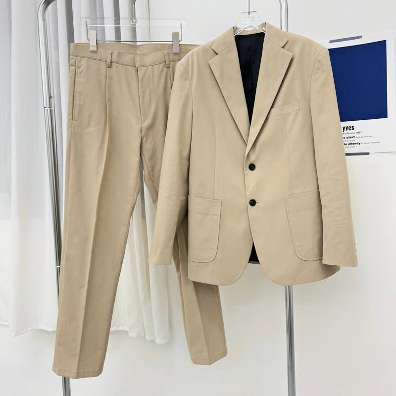 現貨 實拍 韓國製 完美身形 西裝 男生西裝 外套 卡其 長褲 剪裁 微腰身 正式 套裝