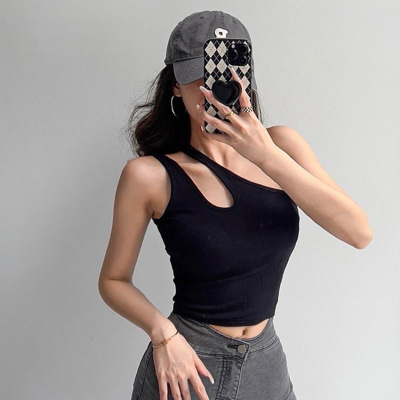 現貨 2色 大斜肩 露洞 性感 造型 背心