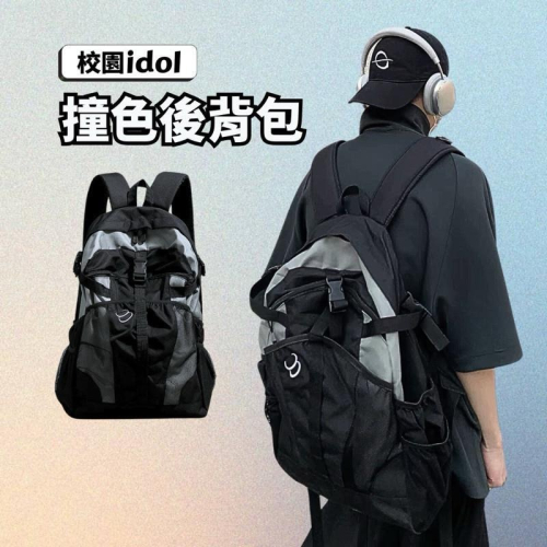 現貨 校園idol 撞色 網袋 後背包 學生 尼龍 背包 男 雙肩包 SB041