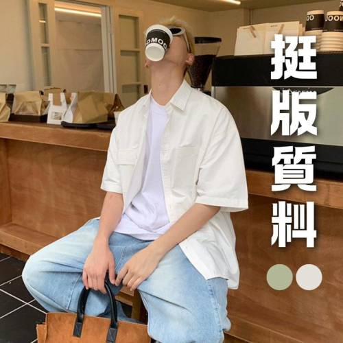 現貨 2色 挺料雙口袋 短版襯衫 短袖 上衣 男 挺版 質感 韓系