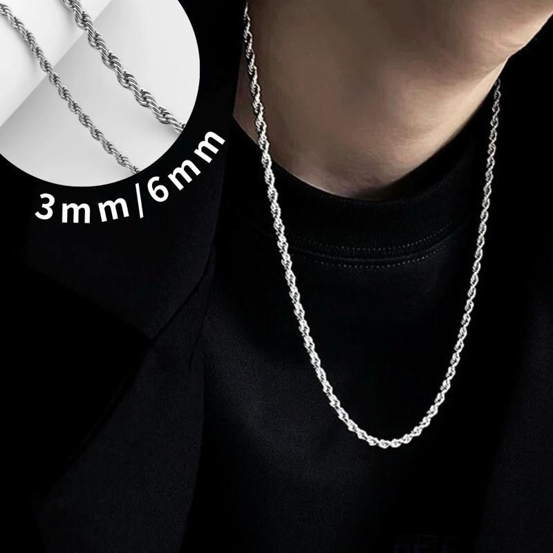 男生項鍊 男飾品 辣妹飾品 短項鍊 麻花項鍊 基本款  素鏈 素鍊 單鍊 單鏈 3mm 美式 日常 百搭 基本款  不銹鋼 個性 立體 鈦鋼 銀色 商品材質:鈦鋼 商品尺寸(± 3cm): 直徑3mm 鍊長45 延長鍊5 直徑6mm 鍊長45 延長鍊5 📦📦📦購買前請詳閱賣場介紹