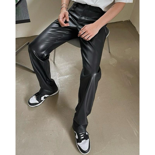 現貨 單品實拍 型男直筒皮褲 長褲 皮革 男生