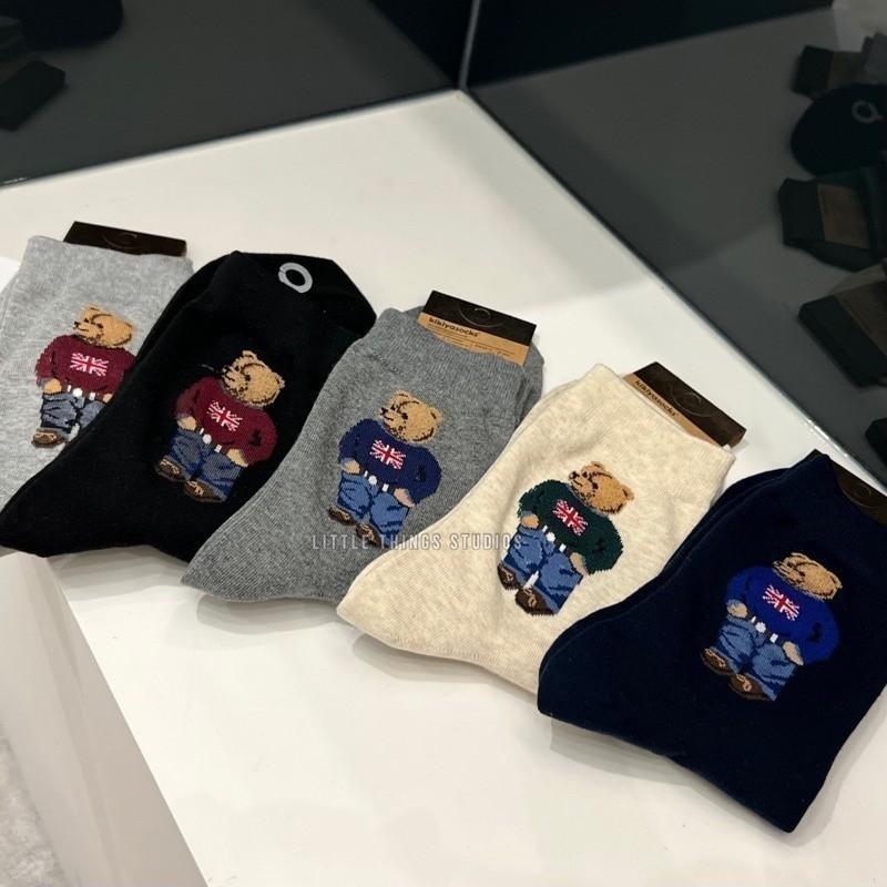 最後現貨出清價 實拍 dseing korea 復古小熊長襪 國旗 熊熊 中筒襪