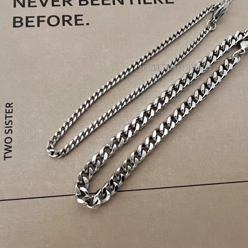 現貨 實拍 鈦鋼側磨手鍊 細鍊 銀色 男 女
