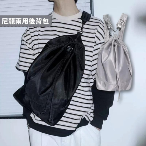現貨 2色 輕世代 尼龍束口 兩用 後背包 斜背包 拳擊包 抽繩 設計感 水桶包 大容量 簡約 男生背包 韓國
