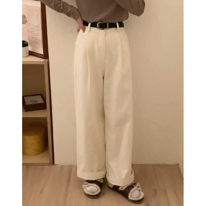 現貨 實拍 3色 韓系厚挺棉 百搭 長褲 直筒 顯瘦 寬褲 厚挺棉