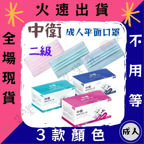 【中衛CSD 平面成人醫用口罩】醫療口罩 醫用 平面口罩 成人 台灣製造 雙鋼印 二級 藍 粉 綠 50入