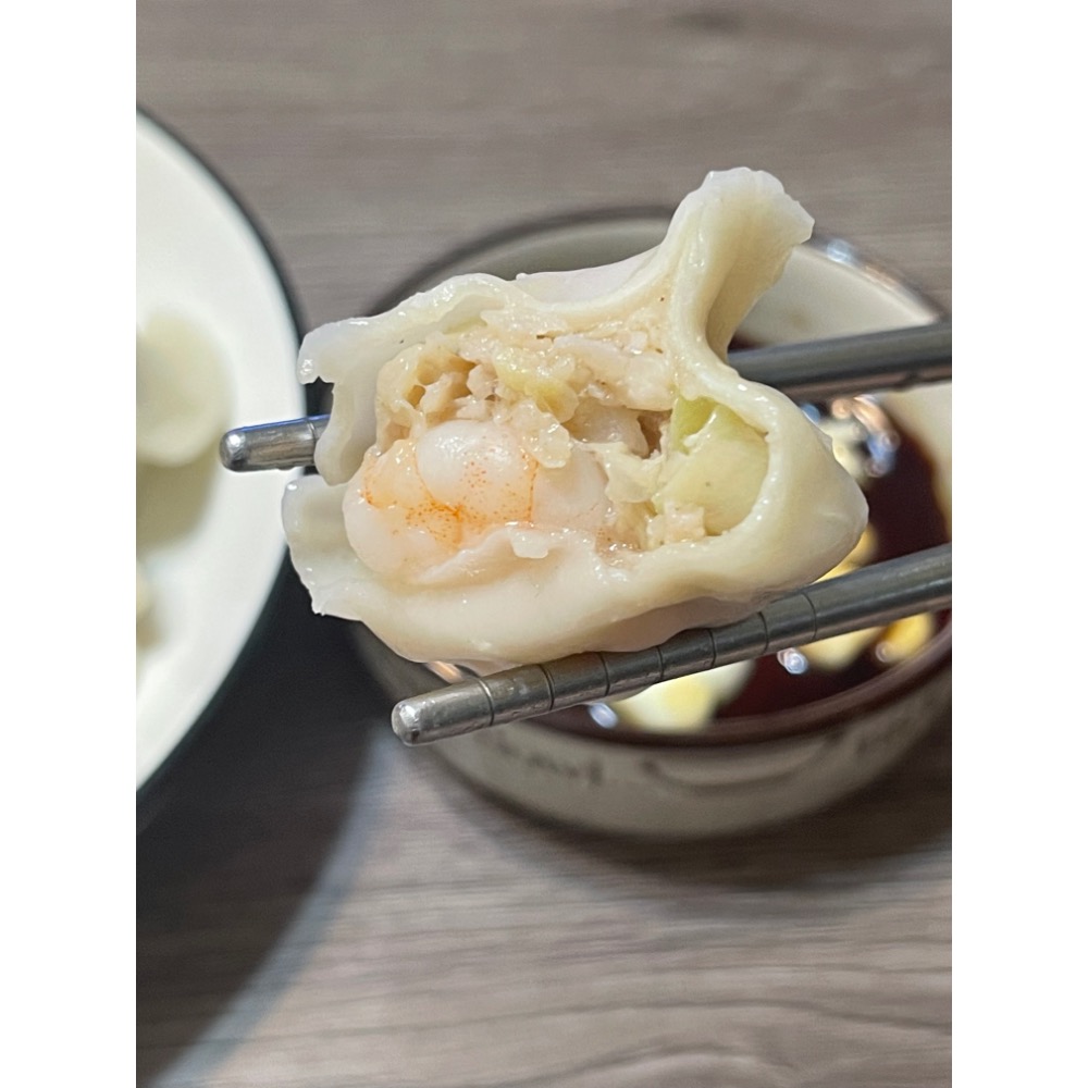 鮮蝦高麗菜水餃,每包45顆,380元。餡料紮實飽滿,蝦子新鮮。