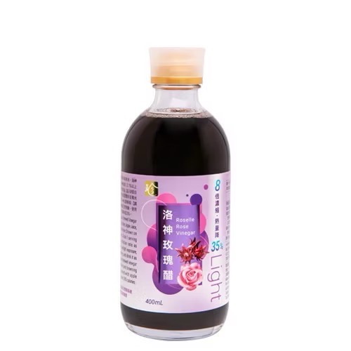 蔗糖、釀造醋(水、高粱)、洛神玫瑰萃取液(水、洛神花、玫瑰花)、水、蘋果汁、食用香料、鹽
