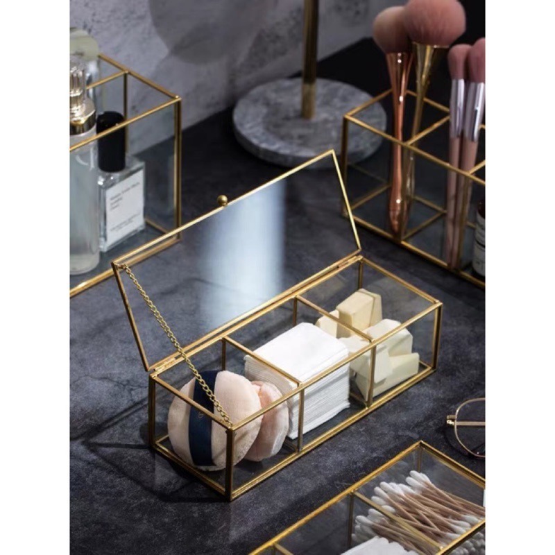 |電鍍玻璃三格收納盒|