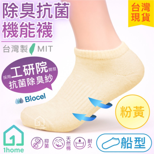 現貨|MIT抗菌除臭機能船型襪-黃色|工研院Biocel/台灣製造/抗菌/除臭/透氣/船型/棉襪/襪子【1home】