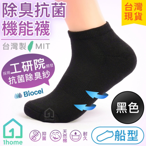 MIT抗菌除臭機能船型襪-黑色|工研院Biocel/台灣製造/除臭/抗菌/透氣/船型/棉襪/襪子【1home】