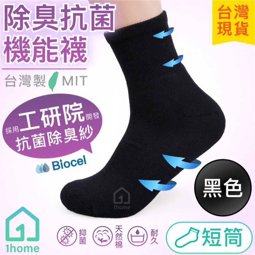 現貨|MIT抗菌除臭機能短筒襪-黑色|工研院Biocel/台灣製造/抗菌/除臭/透氣/短襪/棉襪/襪子【1home】