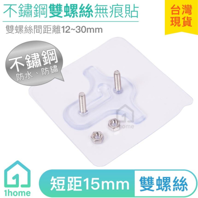 現貨|短距15mm-不鏽鋼雙螺絲無痕貼|免釘牆壁/免鑽孔/超黏性/無痕掛勾/掛鉤/防鏽/防水/無痕貼【1home】