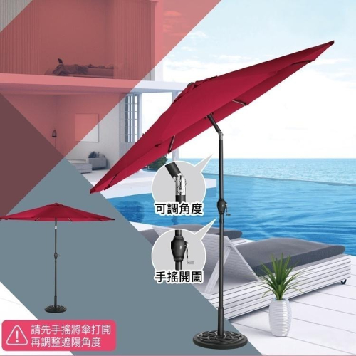 商品名稱:8骨手搖2米7懸臂戶外傘(附傘座)(紅色)