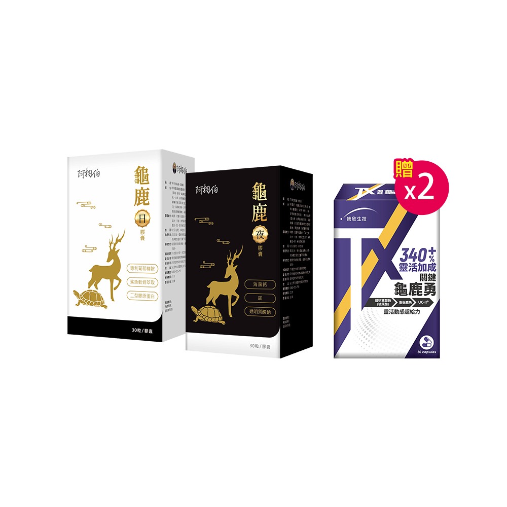內容物:阿桐伯龜鹿日膠囊0.5gx30粒、阿桐伯龜鹿夜膠囊0.5gx30粒