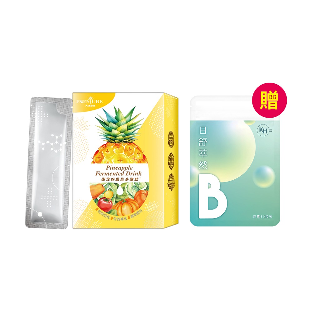 成分:鳳梨發酵液(異麥芽寡糖、鳳梨發酵液、黑糖(蔗糖、糖蜜))、水、蔬果醱酵液(鳳梨、蘿蔔、萵苣、蕪菁、甜瓜、薏仁、絲瓜、西瓜、芹菜、皇宮菜、菠菜、冬瓜、木瓜、哈密瓜、小白菜、海茸、檸檬、甘藍、南瓜、番茄)、綜合消化酵素(蛋白酵素、麥芽糊精、澱粉酵素、糖化酵素、脂解酵素、轉化酵素、鳳梨酵素、纖維素分解酵素)、靈芝菌絲體(Ganoderma lucidum,液態發酵)。