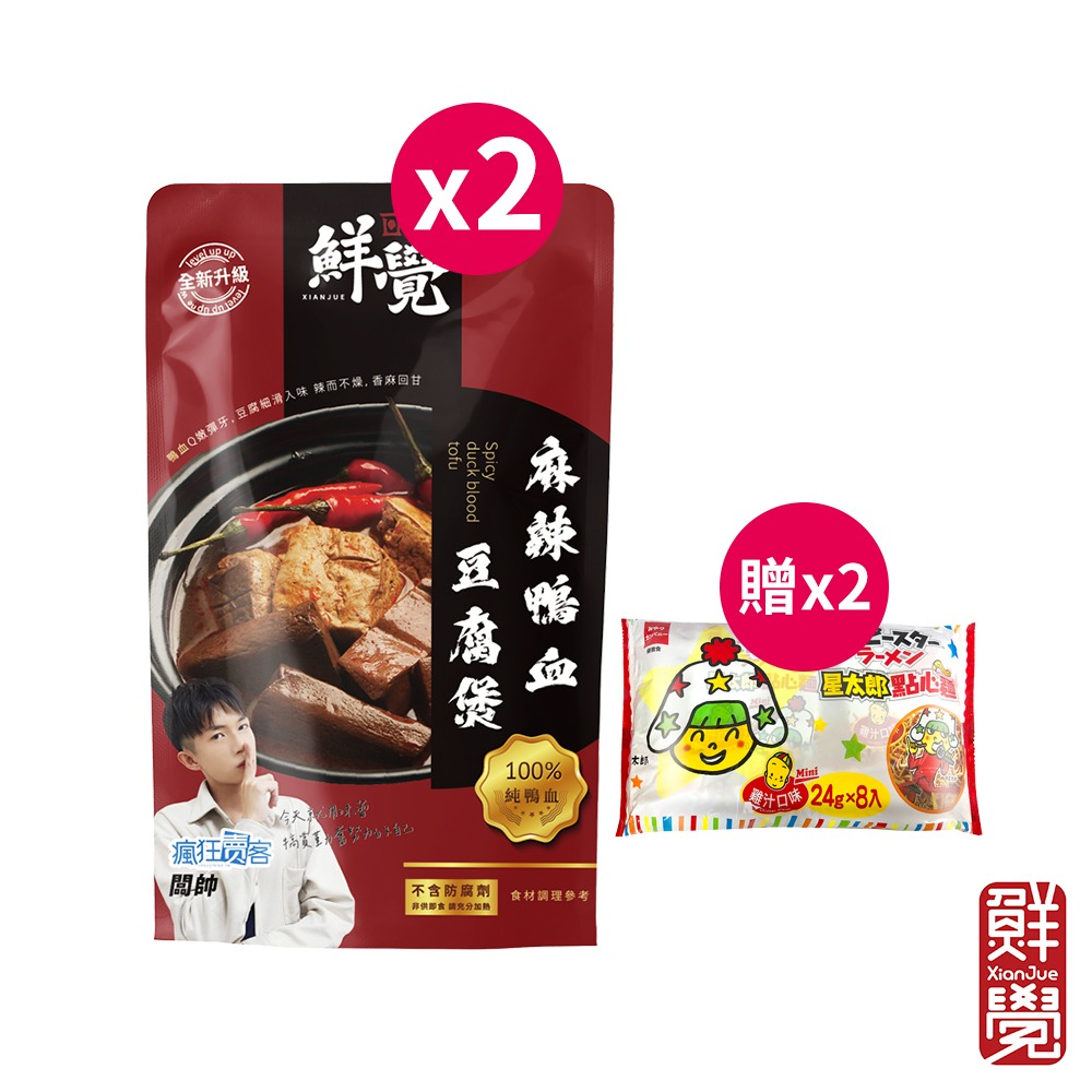 成分:鴨血(水、鴨血、鹽、多磷酸鈉、酸性焦磷酸鈉、消泡劑)、非基因改造臭豆腐(黃豆、水、食用石膏)、花干、素腰花、蓮藕、大豆沙拉油、辣椒粉、豆瓣醬(非基因改造黃豆、米、鹽、小麥、焦糖色素)、辣椒醬(新鮮辣椒、水、鹽)、紅蔥頭、大蒜、白芝麻油、黑豆鼓(黑豆、鹽)、白胡椒粉、老薑、郫縣豆瓣醬(鮮紅辣椒、蠶豆、鹽、小麥粉)、草果、甘草粉、肉桂粉、八角、丁香粉、子彈辣椒、朝天椒乾、燈籠椒、小茴香粉、肉精粉(鹽、L-麩酸鈉、麥芽糊精、5’-次黃嘌呤核苷磷酸二鈉、5’-鳥嘌呤核苷磷酸二鈉、胺基乙酸、琥珀酸二鈉、DL-胺基丙酸、昆布精粉(昆布粉、糊精、L-麩酸鈉)、醬油粉(非基改純造醬油、麥芽糊精、食鹽、砂糖、調味劑(琥珀酸二鈉、5’-次黃嘌呤核苷磷酸二鈉、5’-鳥嘌呤核苷磷酸二鈉))、調味料(大豆水解蛋白、大豆油)、二氧化矽(1%)、香料)