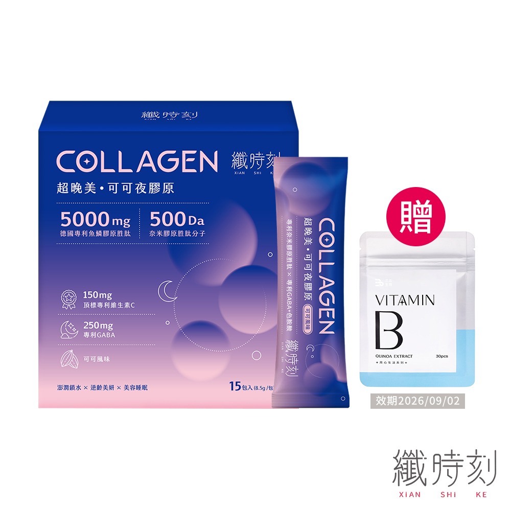 成分:專利CollaGEM™魚鱗膠原胜肽、可可粉、麥芽糊精、專利麩胺酸發酵物(含GABA)[麩胺酸發酵物、麥芽糊精]、複方維生素C(緩釋型)[L-抗壞血酸(維生素C)、柑橘萃取物、米糠粉]、L-色胺酸、香料、甜菊糖苷(甜味劑)、專利日本玄米萃取物(含神經醯胺)[玉米糊精、米抽出物]