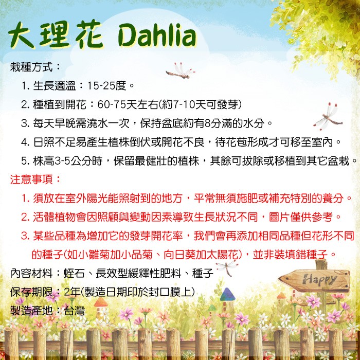 2.每一種種類適合的栽種氣候溫度不同,請依說明書施種。