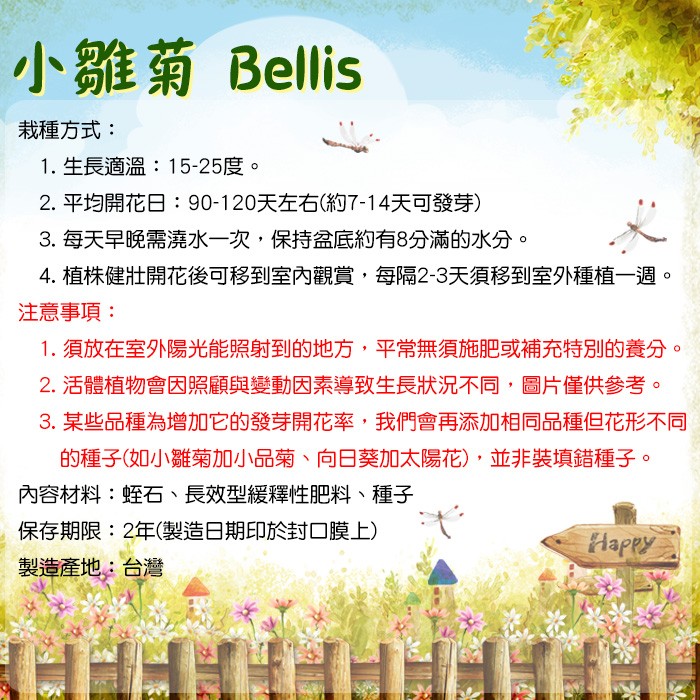 2.每一種種類適合的栽種氣候溫度不同,請依說明書施種。