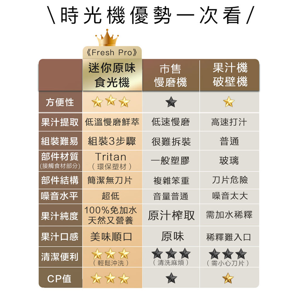 Mini Pro原味食光機 採用先進的低溫冷壓慢磨技術,選用安全無毒頂級『Tritan材質』,