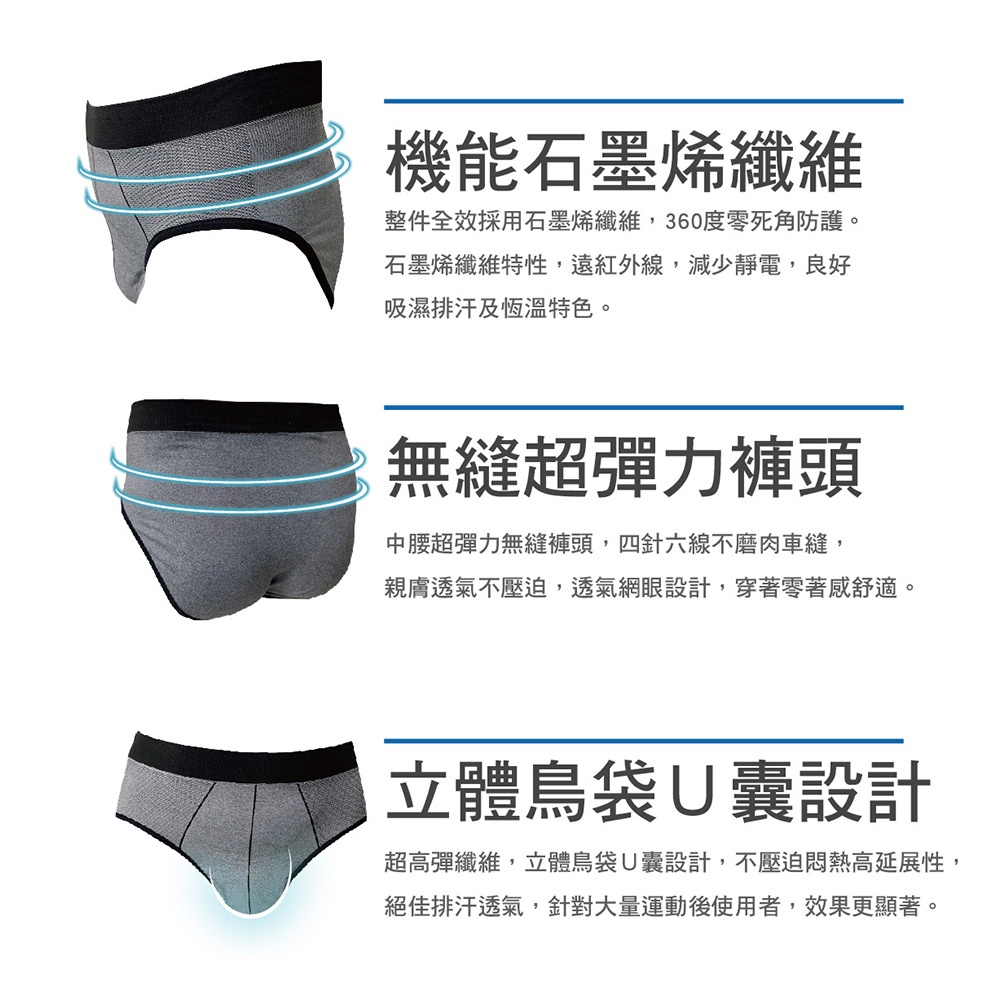 褲身採用整件黑金科技石墨烯纖維,穿著更健康。