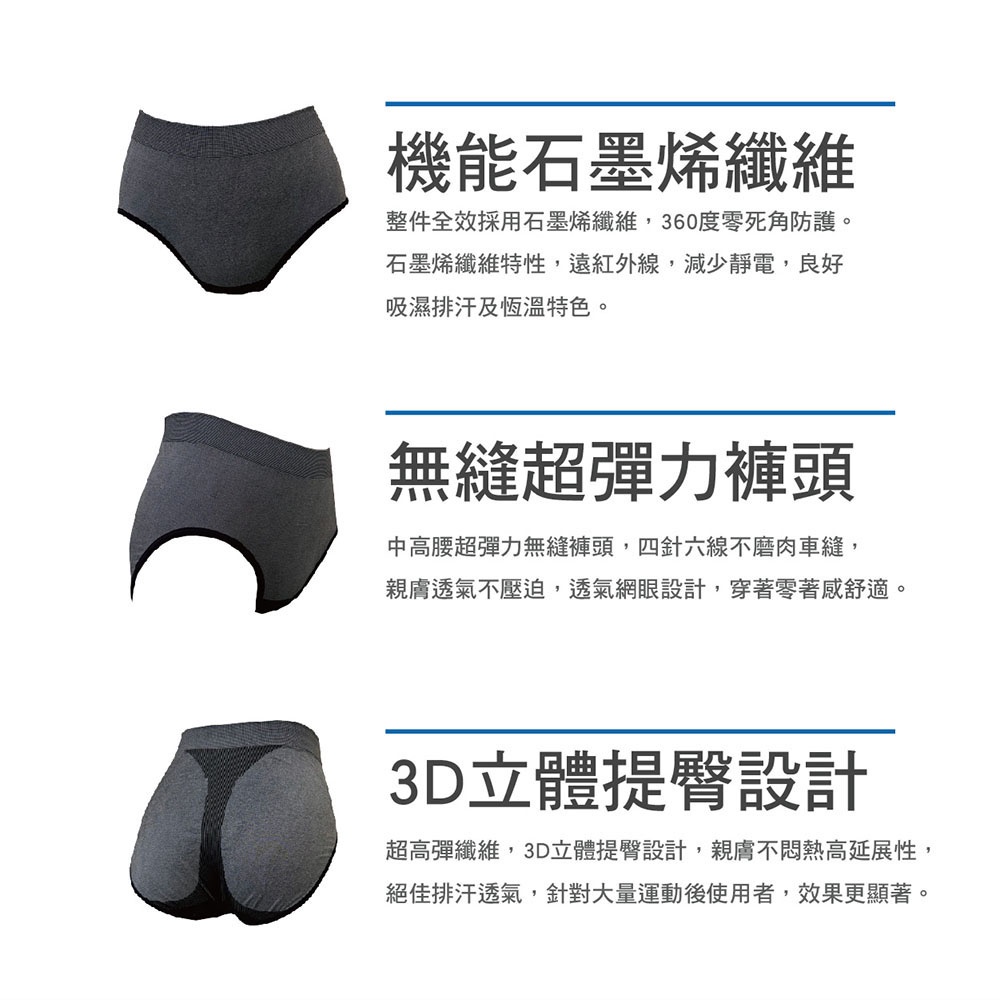 褲身採用整件黑金科技石墨烯纖維,穿著更健康。
