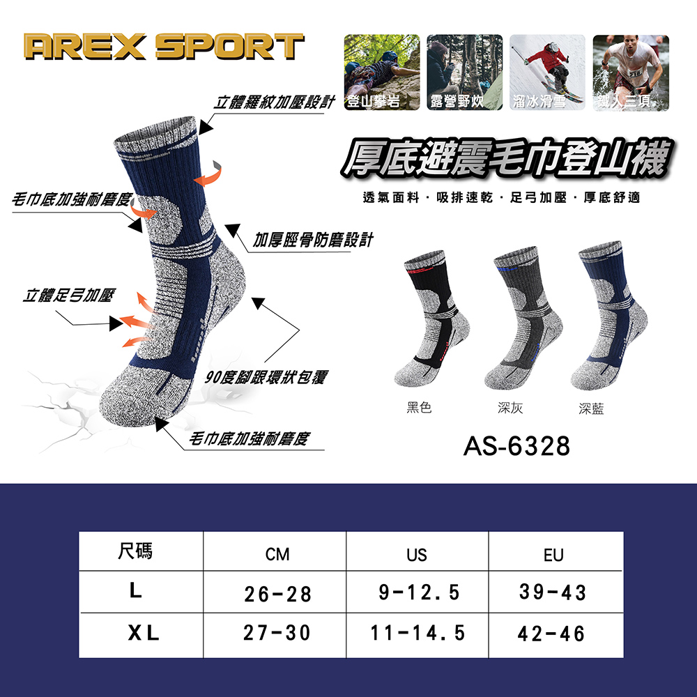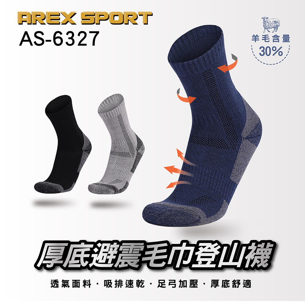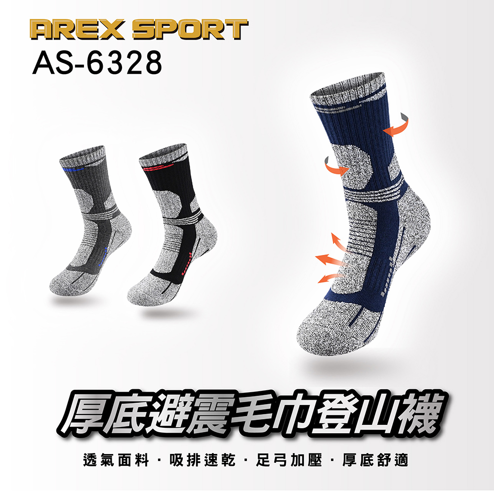 品名:【AREXSPORT】厚底避震毛巾登山襪