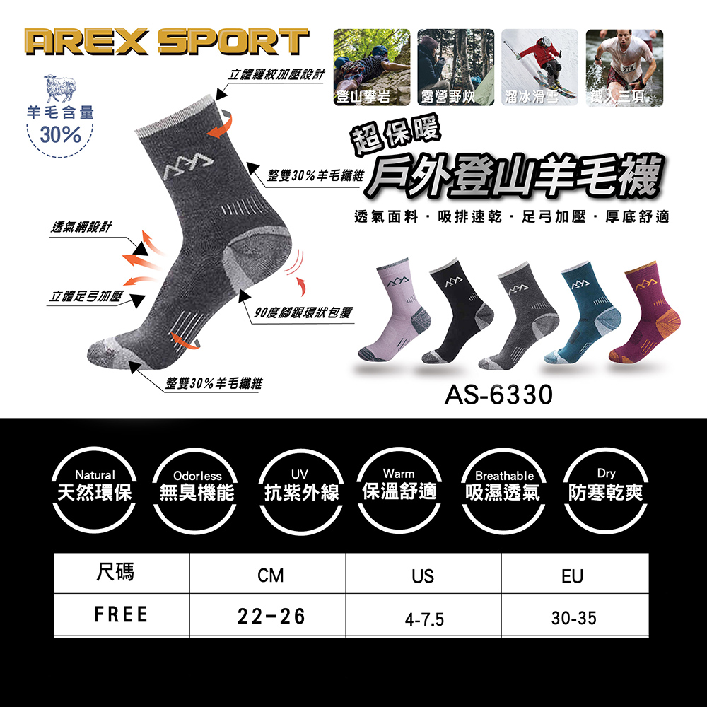 品名:【AREXSPORT】戶外登山羊毛襪