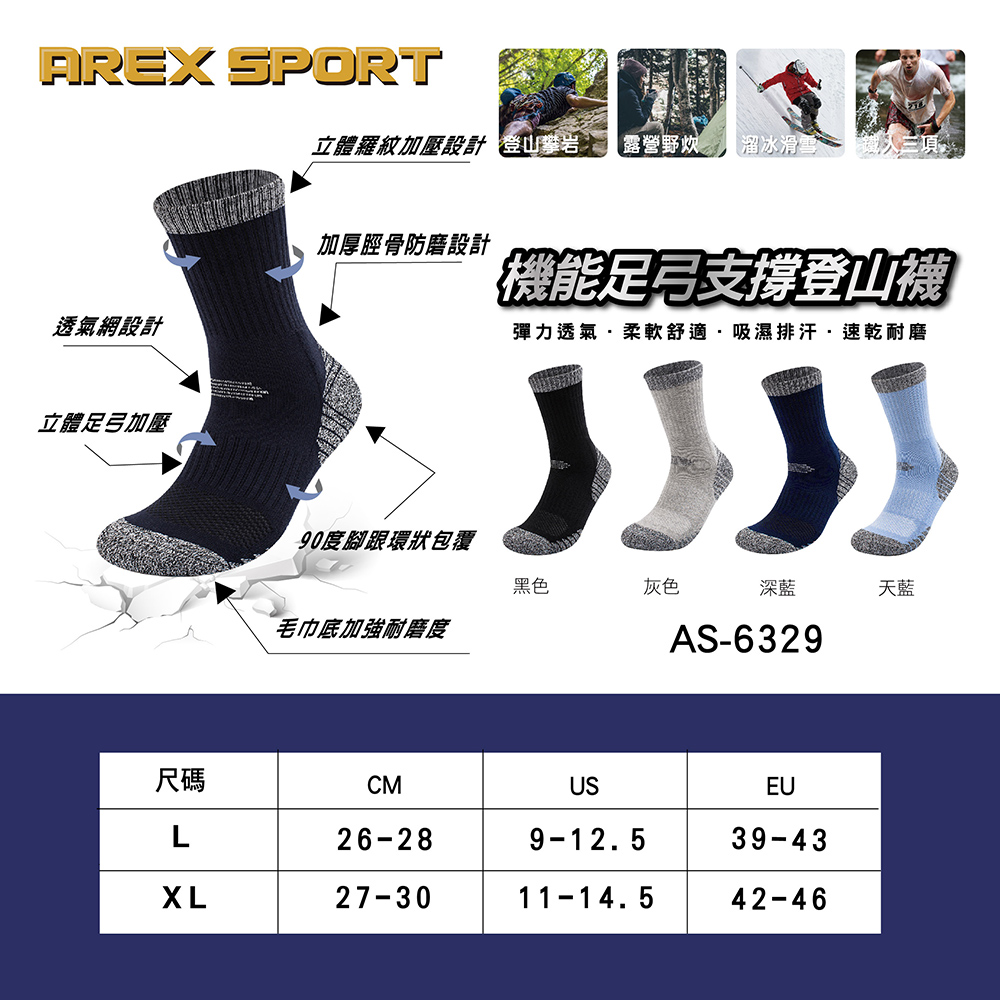 品名:【AREXSPORT】機能足弓支撐登山襪