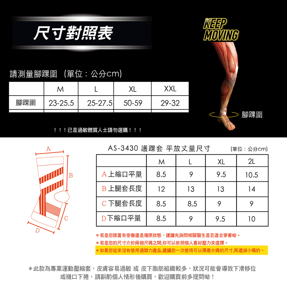 (首次穿著建議可帶大一碼,習慣緊度再進行降碼。)