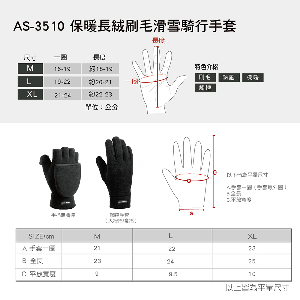 【食指觸控功能免脫手套,可直接使用3C產品 】