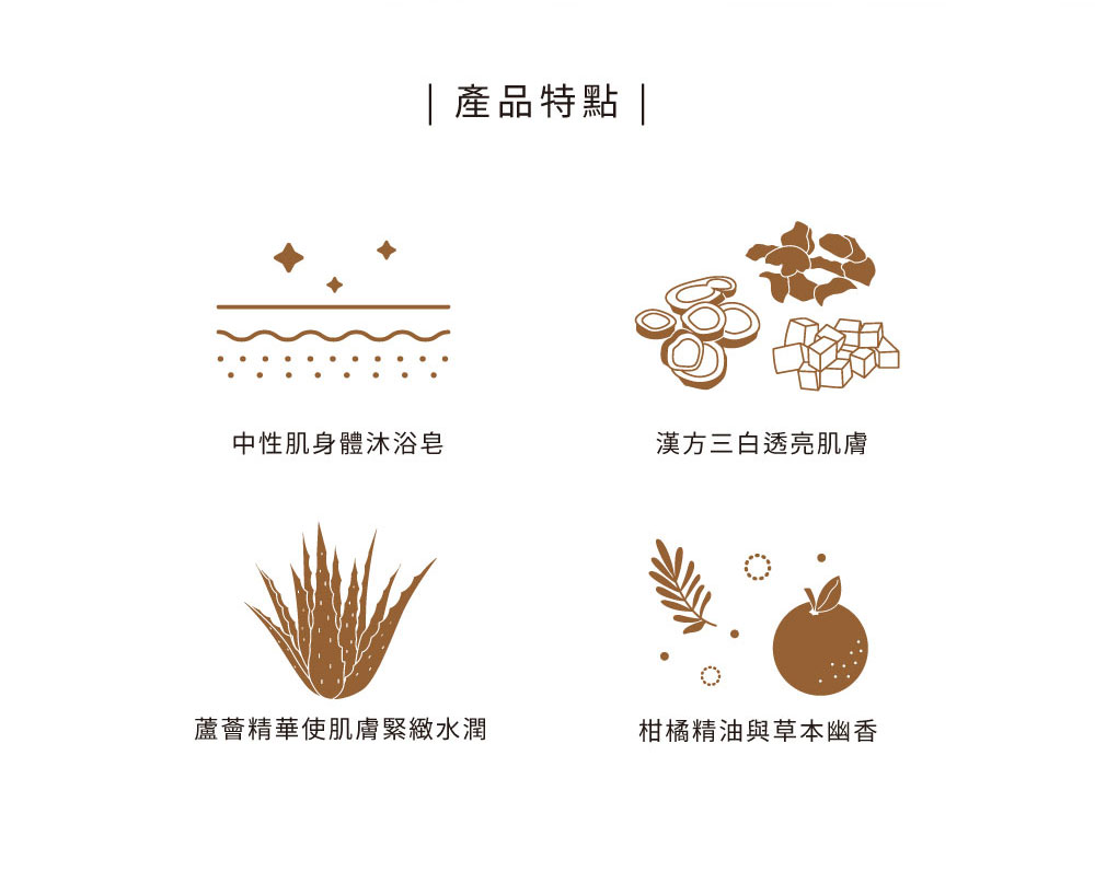 商品特色:潔淨、亮白肌膚
