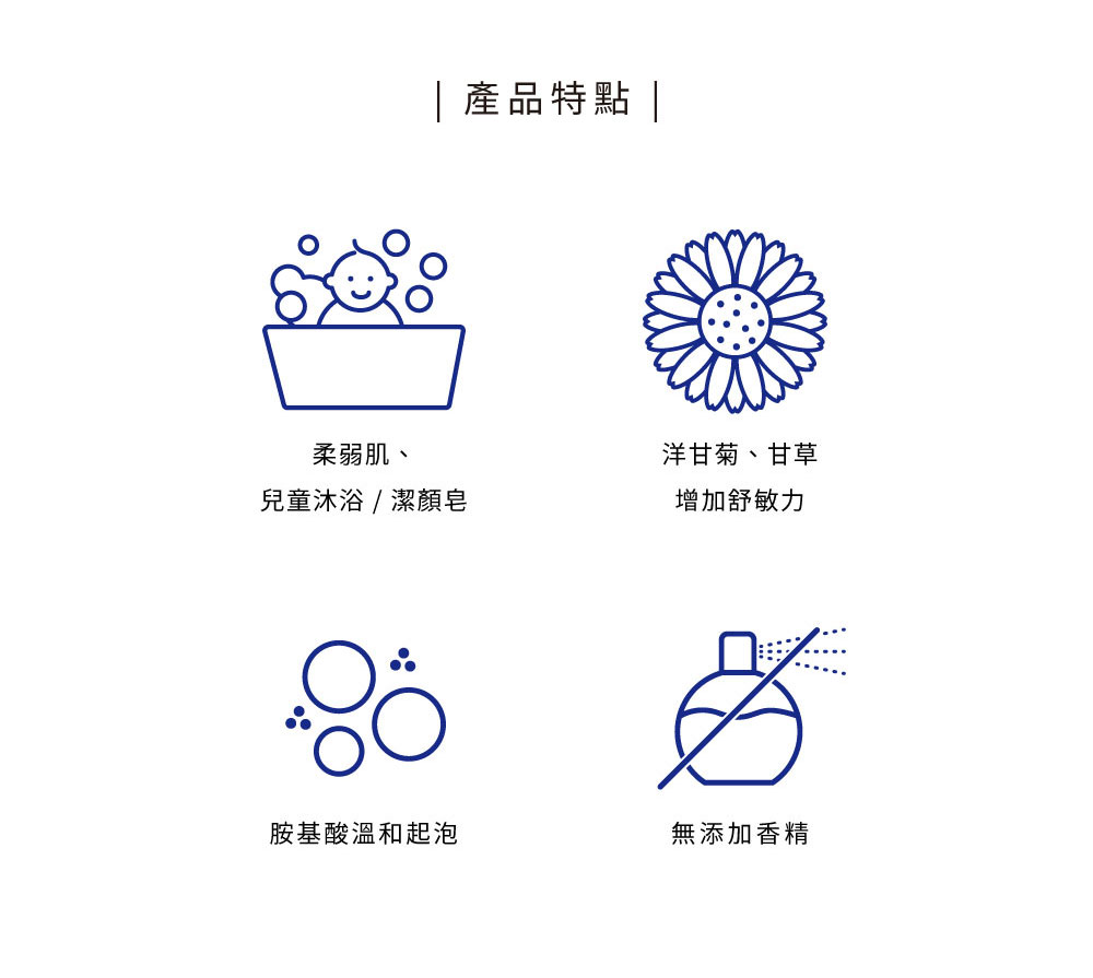 商品特色:舒柔潔淨、安撫肌膚因乾燥引起的皮膚不適