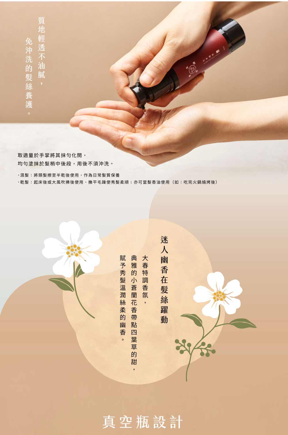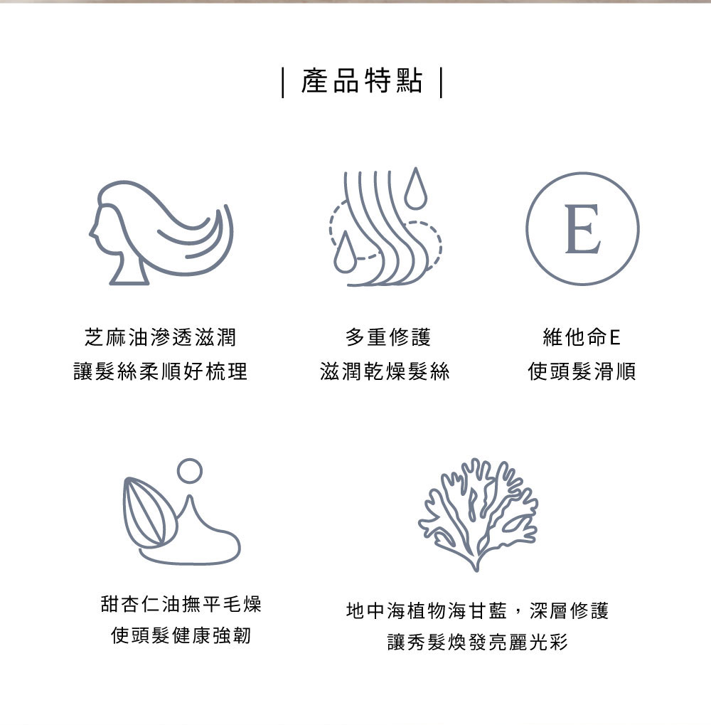 商品特色:潤澤髮絲,撫平毛燥
