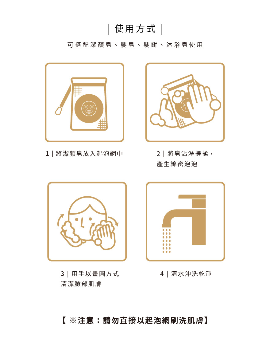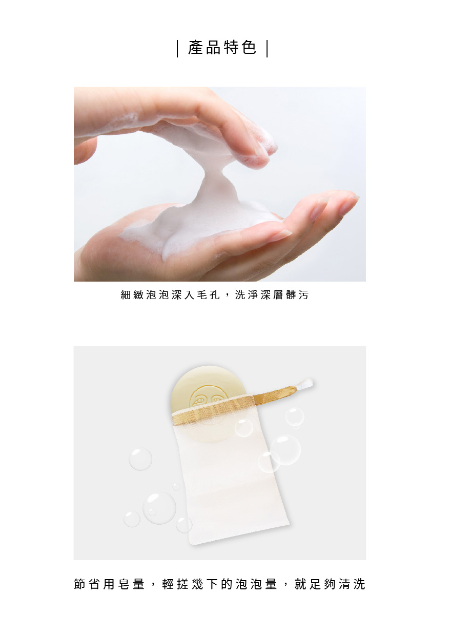 使用方法:將皂放入起泡網中,輕鬆搓出泡泡