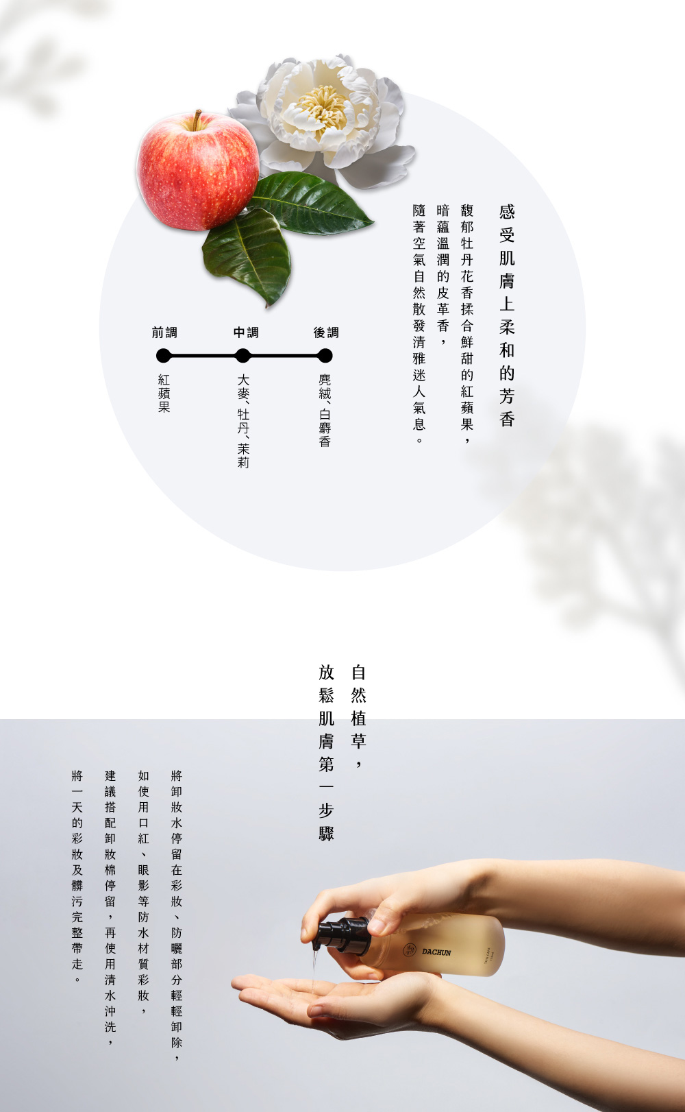 使用方法:取適量卸妝水於化妝棉,輕輕擦拭臉部肌膚直至彩妝完全卸除。