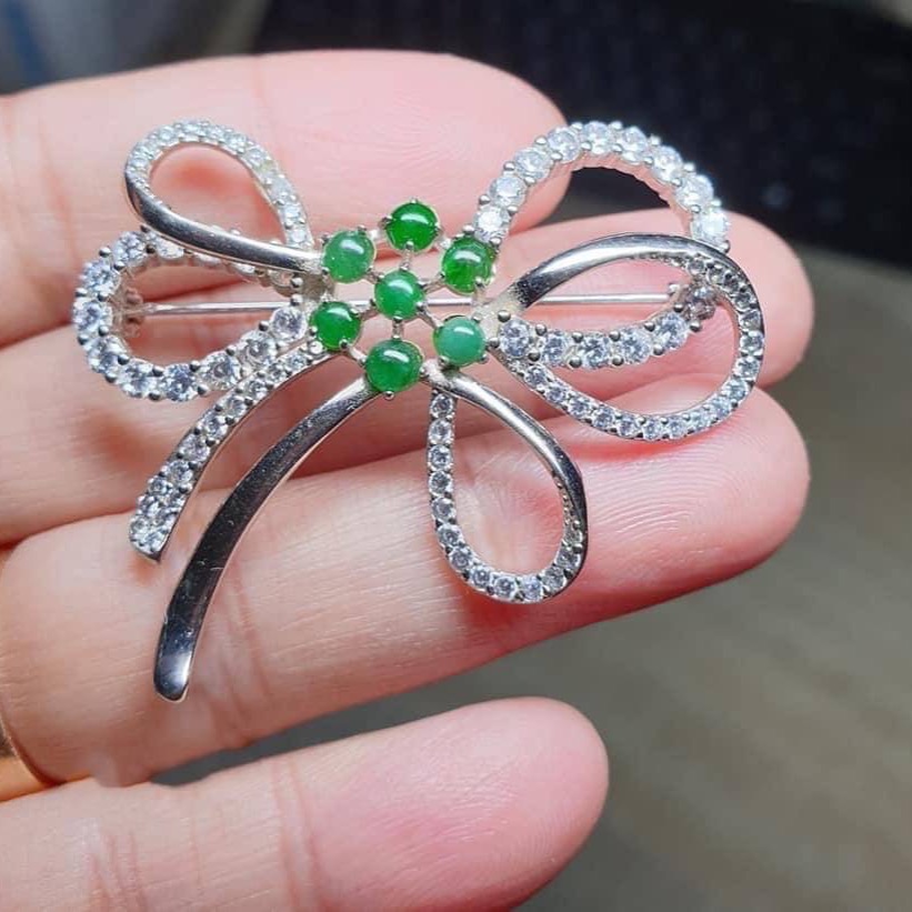 現貨✅全新天然緬甸玉A貨翡翠 蝴蝶結胸針/項鍊二用/S925 銀