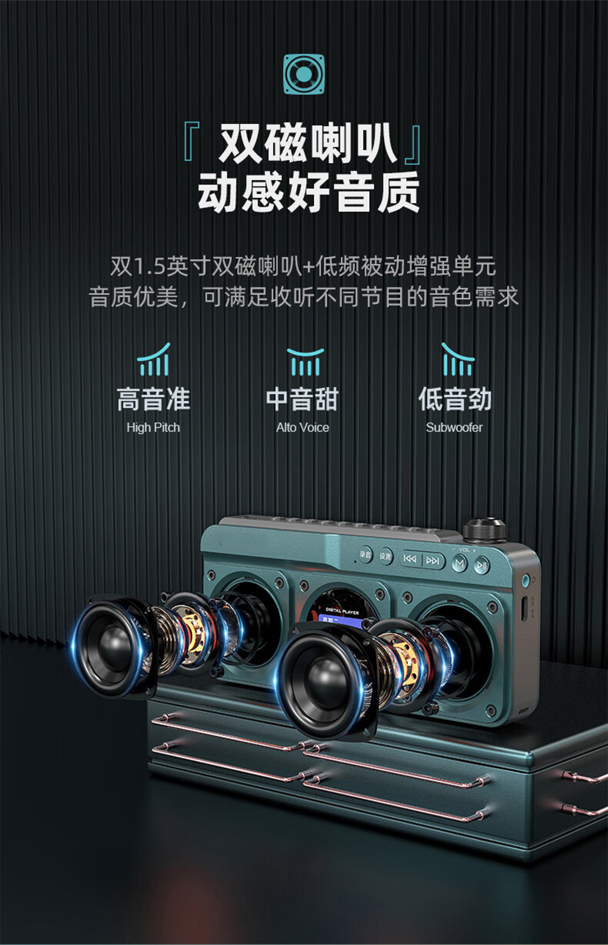 ◇ 喇叭配置:【輸出10瓦】1.5寸双磁喇叭X2+低頻被動增強單元