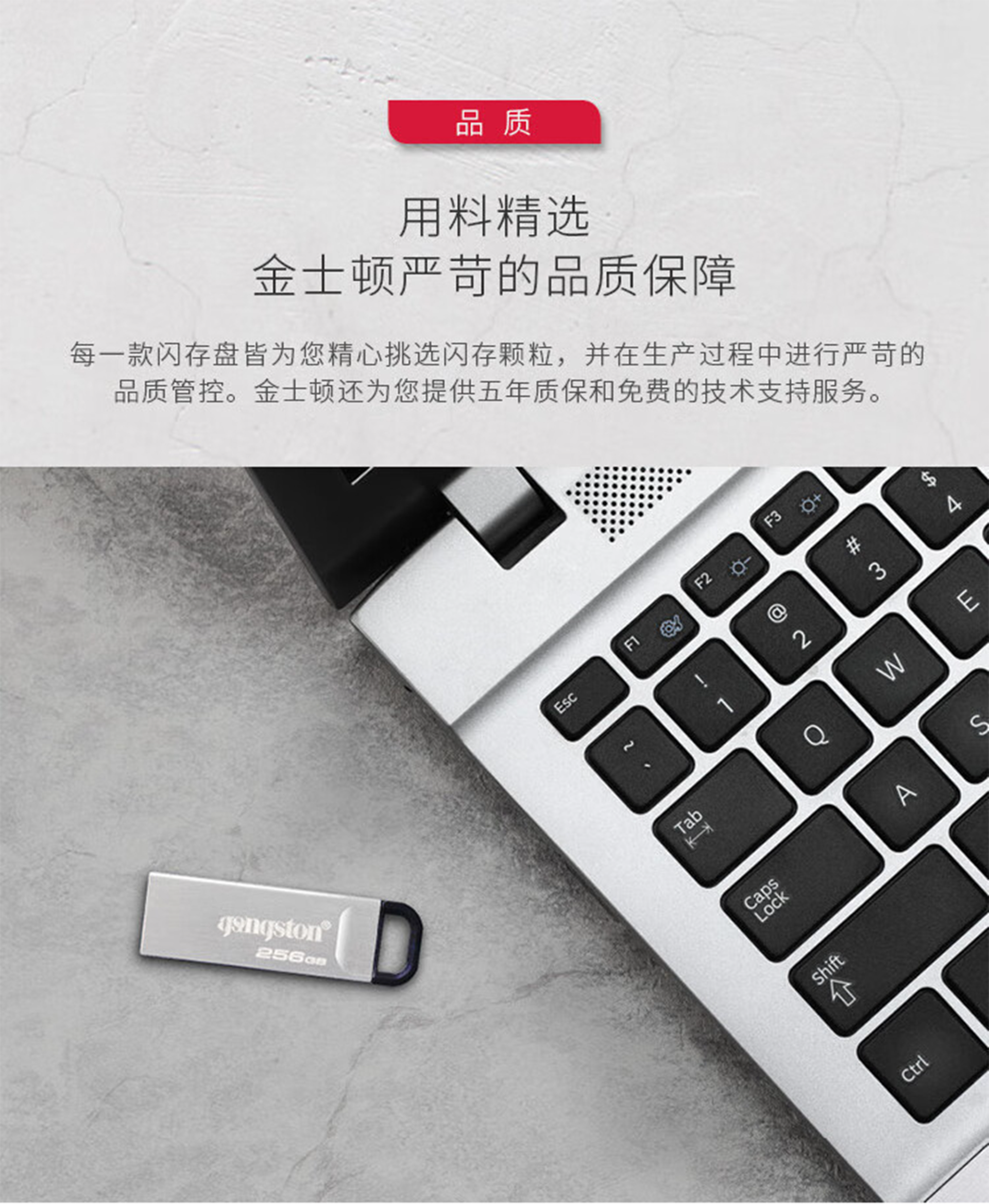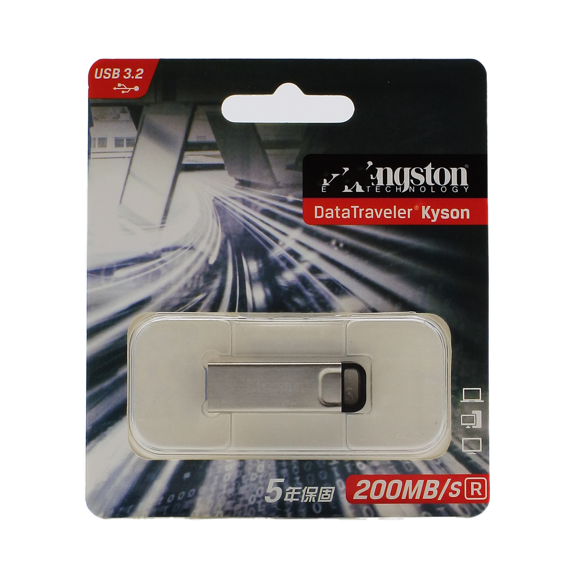 DataTraveler® Kyson 是時尚且可靠的 USB Type-A 隨身碟,並提供 5 年產品保固。