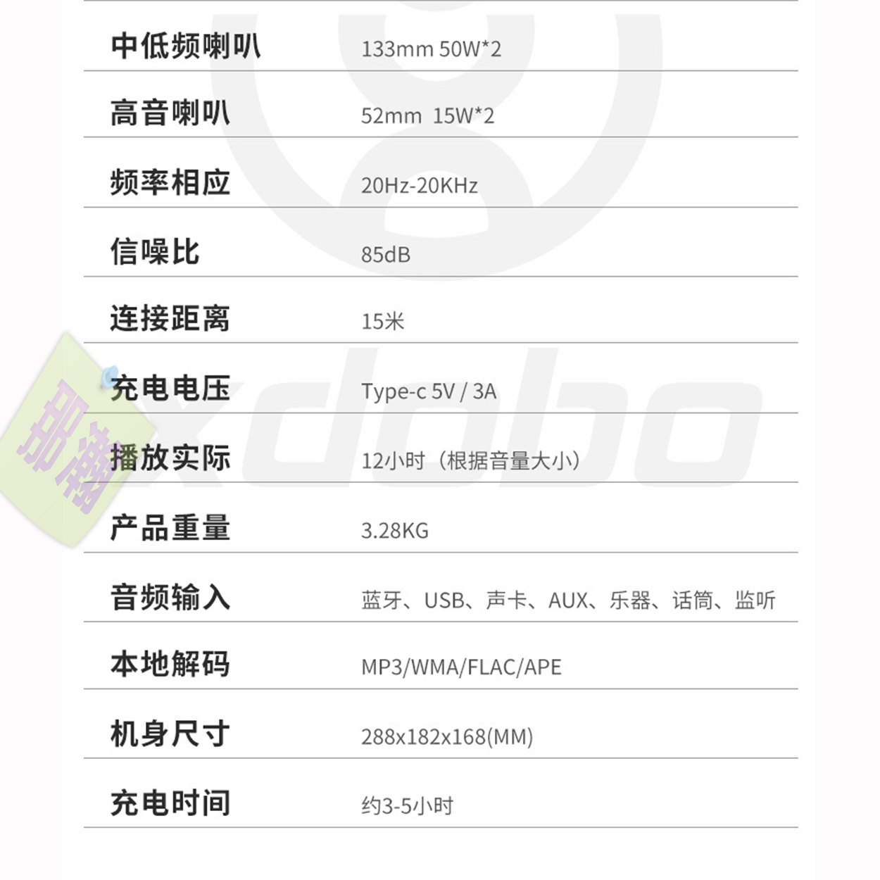 ◇ 電池容量:10000mAh 內置鋰電池 充電時間約6小時 播放時最長可達12小時 ( 根據音量大小所有不同 )