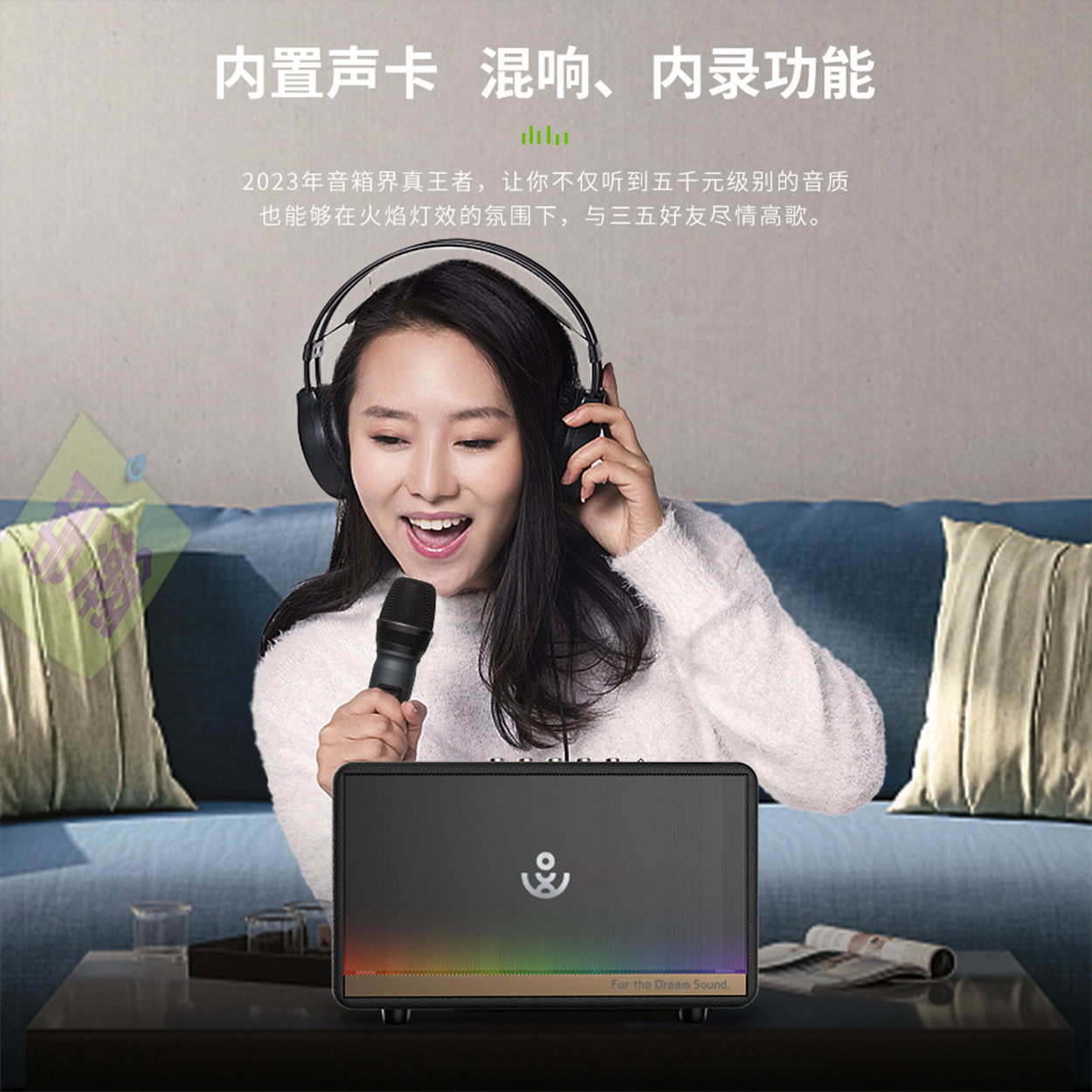 ✅ 注意事項:音響有兩個支持6.5mm插口,一個6.5mm插口外接有線無線麥克風 / 一個6.5mm插口外接樂器 ( 外接樂器插口無法調節高低音跟混音 ) 播放音樂,K歌麥克風可獨立調節高低音 混音 延遲。